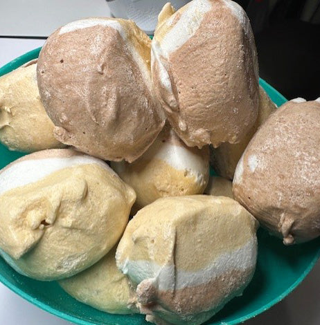 This flavorful Salt water taffy is melt in your mouth deliciousness! Each color has its own flavor and put together its like eating a s'more! These candies are not cut so its like holding a s'more without all the mess! Just one is enough to fight that sweet craving and at only 24 calories a piece, who can resist!